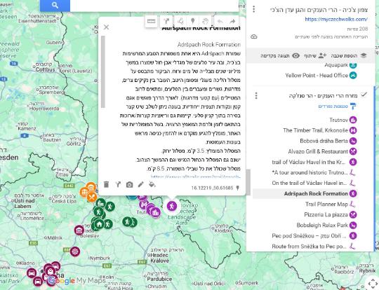 המפה מיועדת לתכנון טיול מושלם בצפון צ'כיה, בגן עדן הצ'כי והרי הענקים: